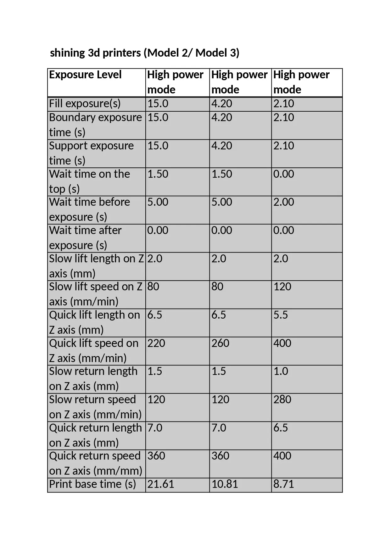 Please find the printer parameter instructions in this pdf: